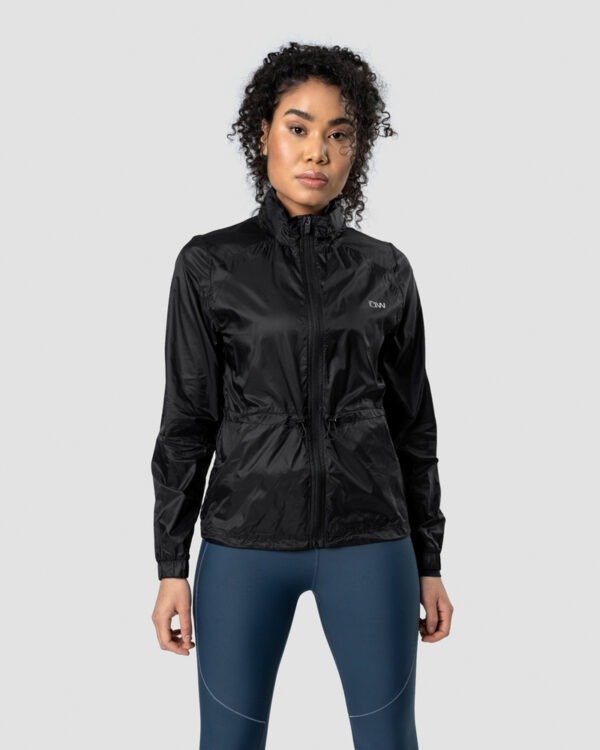 Windbreaker dames van ICANIWILL. Deze getailleerde zwarte windbreaker voor dames is een must have voor iedere hardloopster. Dankzij het trekkoord rondom de taille valt de windbreaker mooi getailleerd. Het jack is water en wind bestendig, waardoor het een perfect hardloop jack / outdoor sport jack is. De dames windbreaker heeft een verborgen capuchon. De capuchon zit verstopt in de hoge kraag van het jack. De windbreaker heeft reflecterende details aan de achterkant en zakken aan de zij kant van het jack. Ook is het logo aan de voorkant van de windbreaker reflecterend. Om je hardloop outfit compleet te maken, bekijk ook eens deze hardlooparmband, speciaal voor je telefoon, sleutels en pasjes.
