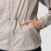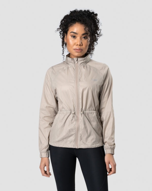 Hardloopjack dames van ICANIWILL. Deze getailleerde beige windbreaker voor dames is een must have voor iedere hardloopster. Dankzij het trekkoord rondom de taille valt de windbreaker mooi getailleerd. Het jack is water en wind bestendig, waardoor het een perfect hardloop jack / outdoor sport jack is. Het hardloopjack heeft een verborgen capuchon. De capuchon zit verstopt in de hoge kraag van het jack. De windbreaker heeft reflecterende details aan de achterkant en zakken aan de zij kant van het jack. Ook is het logo aan de voorkant van de windbreaker reflecterend. Om je hardloop outfit compleet te maken, bekijk ook eens deze hardlooparmband, speciaal voor je telefoon, sleutels en pasjes.