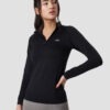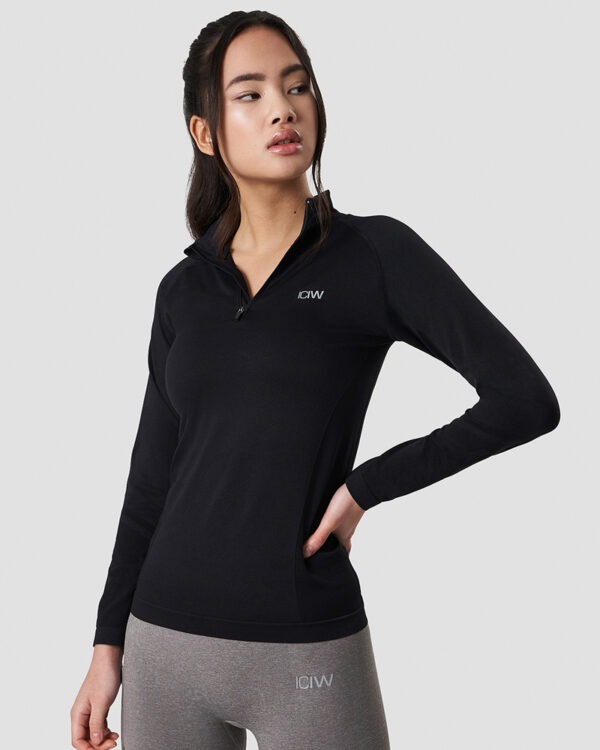 Zwart long sleeve sportshirt met een reflecterend detail op de borst en een rits.
