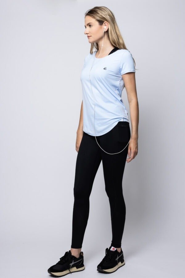 Deze loose fit sportshirt is goed te combineren met deze zwarte Laluux sportlegging. Ga je hardlopen in dit blauwe sportshirt? Dan zijn deze hardloop accessoires ook handig. Dankzij de reflecterende details, ben je zelfs in het donker goed zichtbaar. Zowel in de hardlooparmband als de hardloop heuptas kan je verschillende spullen in opbergen. Bijvoorbeeld een telefoon, sleutels en je pasjes.