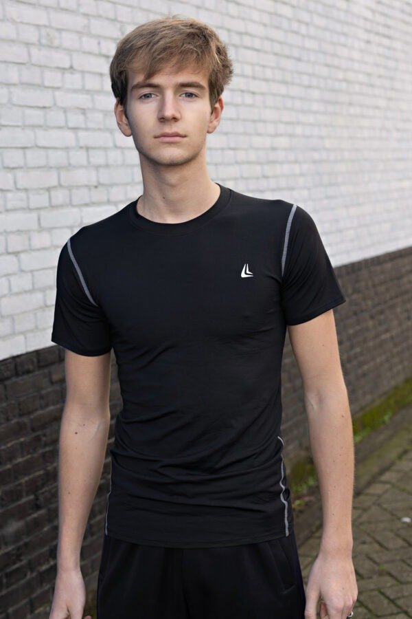 Dit super zachte zwarte sportshirt is voor iedere sporter een musthave in de kleding kast. Het is een goed basis shirt. Wat hiermee wordt bedoeld is dat je dit shirt makkelijk als ondershirt kan dragen voor tijdens het hardlopen, maar ook als fitness shirt. Het shirt is gemaakt van zweet absorberende, snel drogend en goed ademende materialen. Het is gemaakt van Polyester.