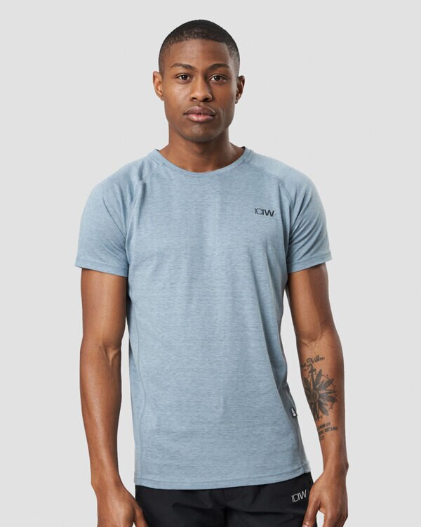Lichtblauw sport t-shirt gemaakt van ICIW’s iconische tri-blend stof.
