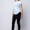 Het model op de foto is 176 en draagt maat S. De top valt op maat.