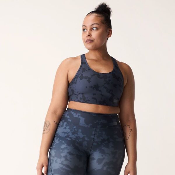 Donkerblauwe tie dye sport bh van Röhnisch. De sportbh biedt een medium support.