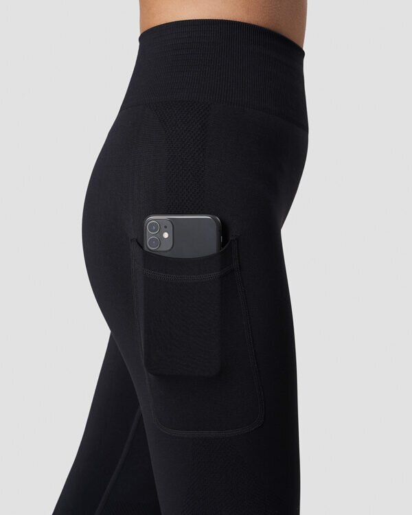 Zwarte seamless sportlegging met een zakje aan de zijkant van het been van I CAN I WILL.